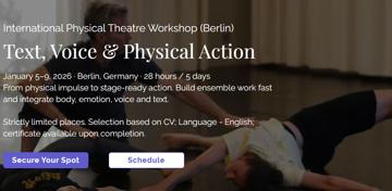 From physical impulse to stage-ready action. Build ensemble work fast and integrate body, emotion, voice and text.